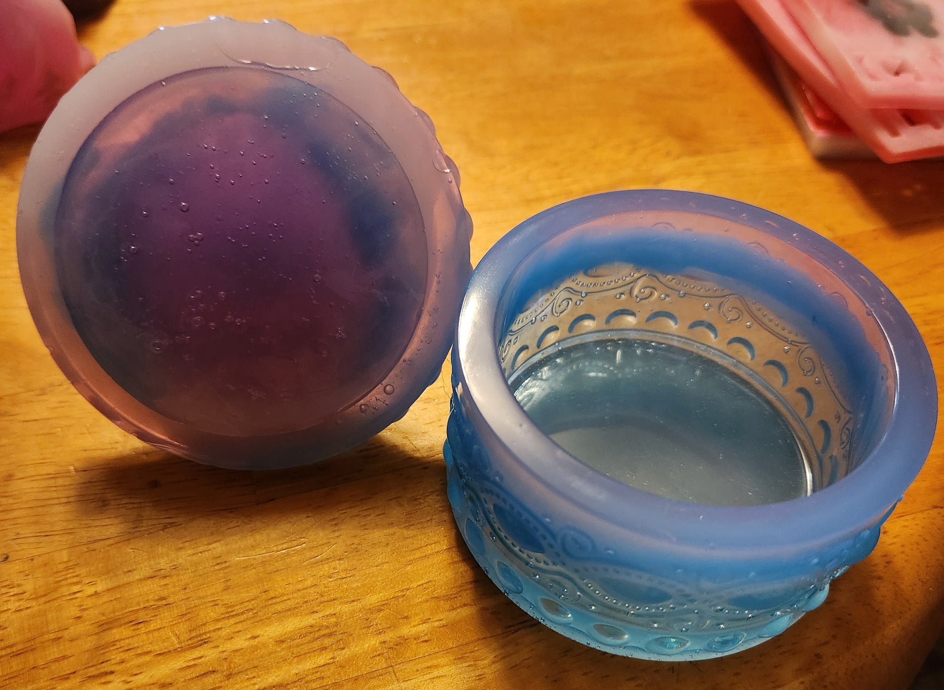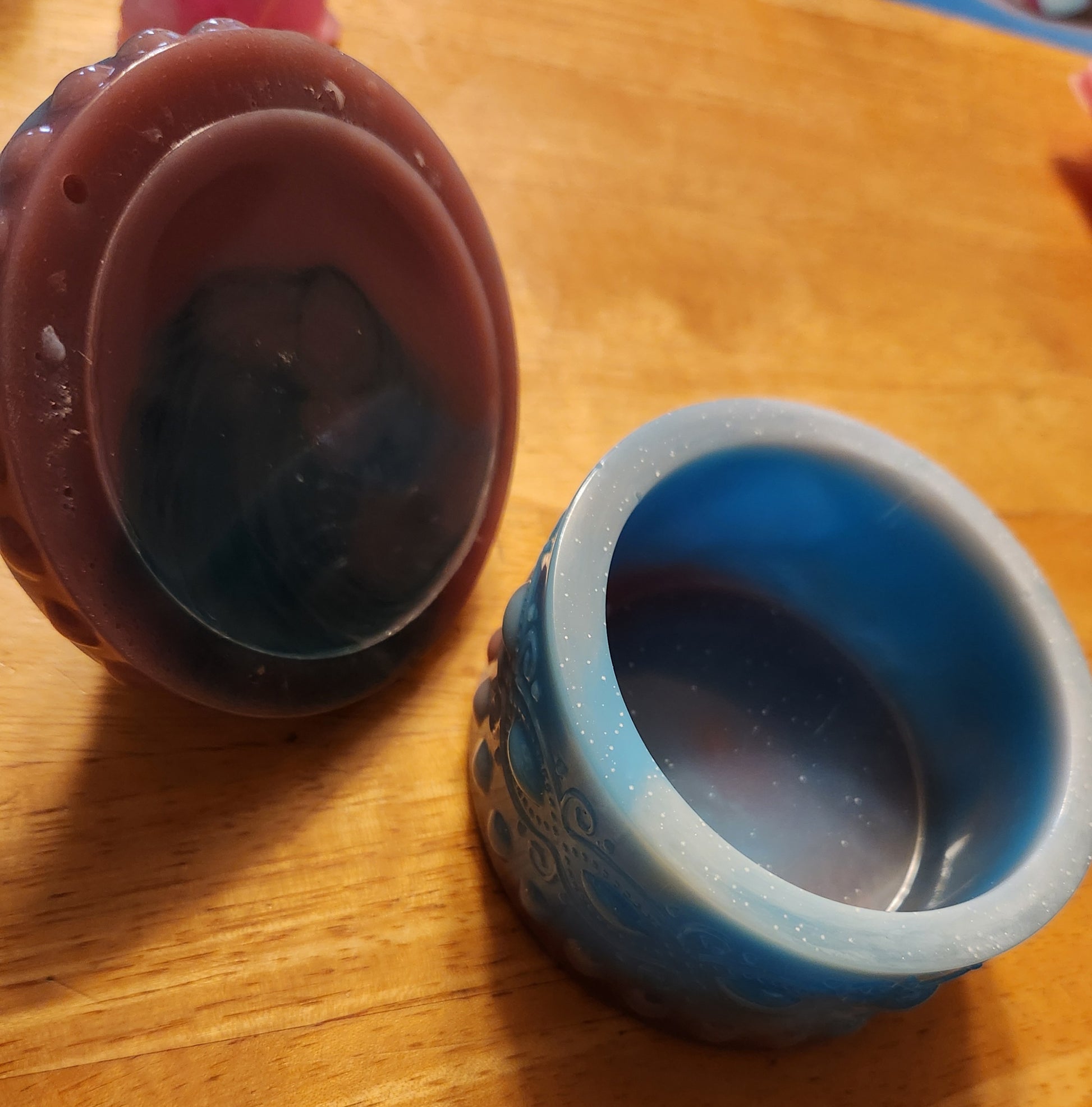 These are jars made of resin. I make them as needed or on demand. I make them in a variety of colors. There is an option of glossy or matte, as well as clear or opaque.